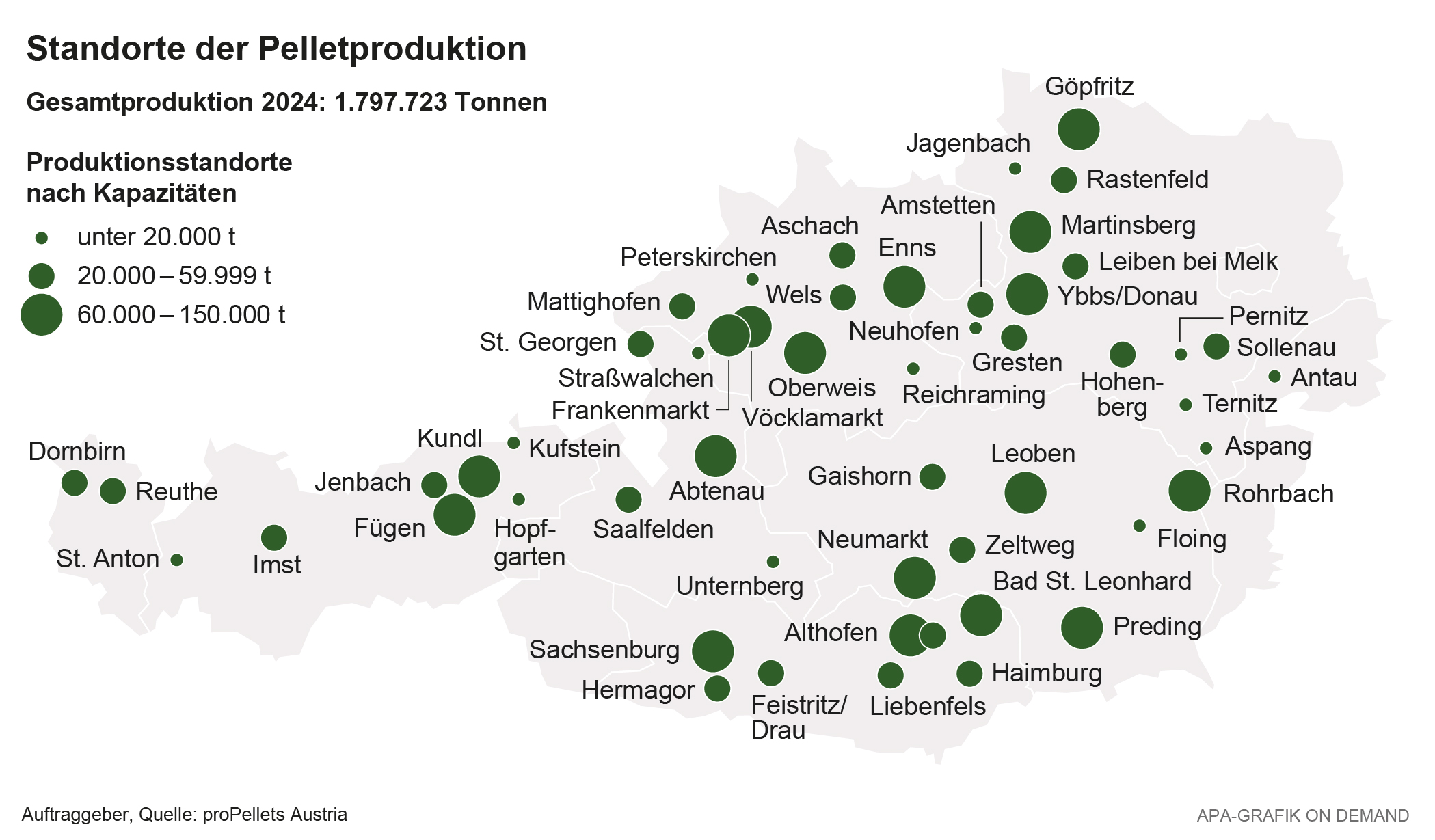 53 Pelletwerke sichern die heimische Versorgung und garantieren kurze Transportwege.