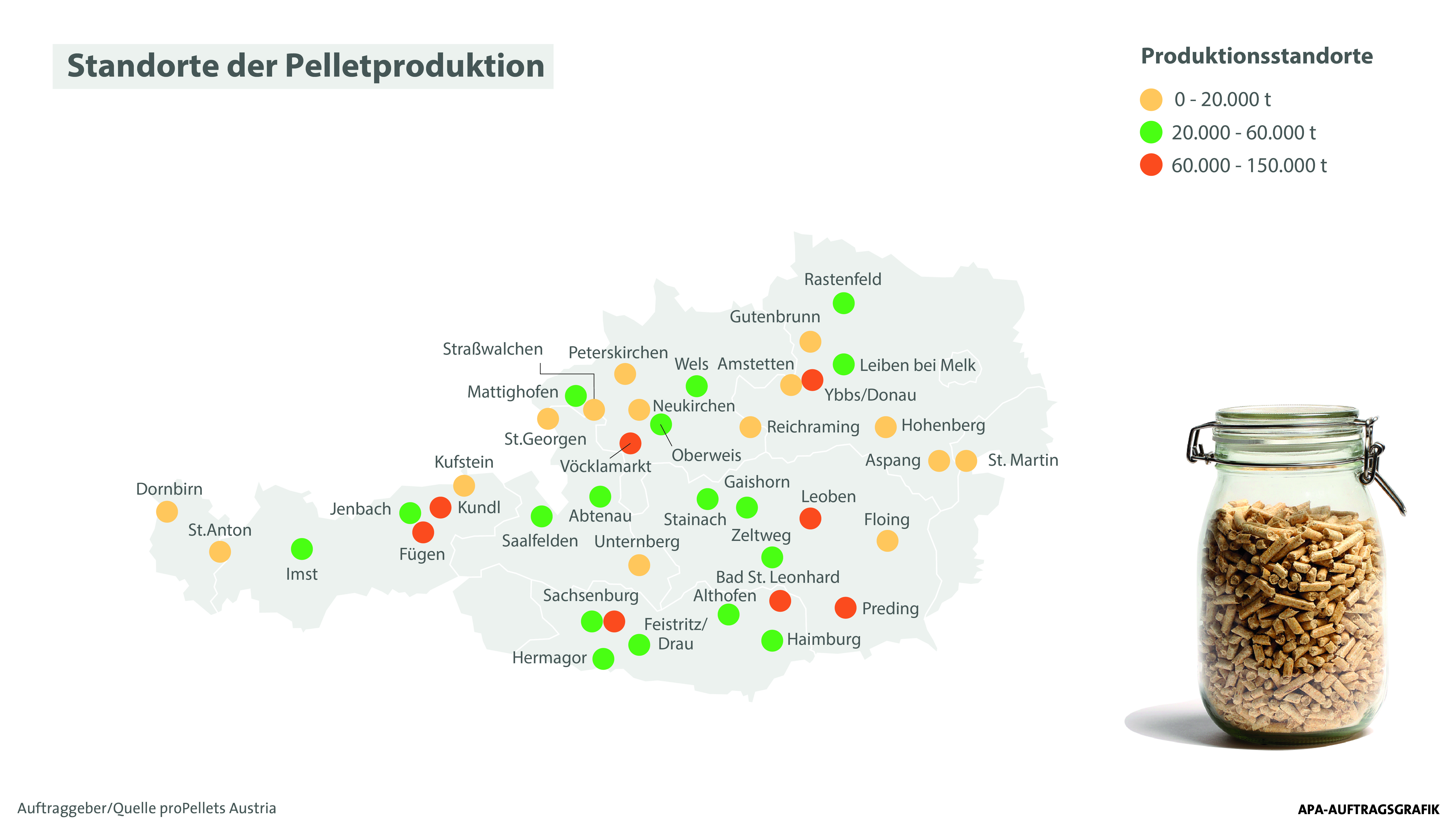 Infografik Produktion und Verbrauch von Pellets in Österreich